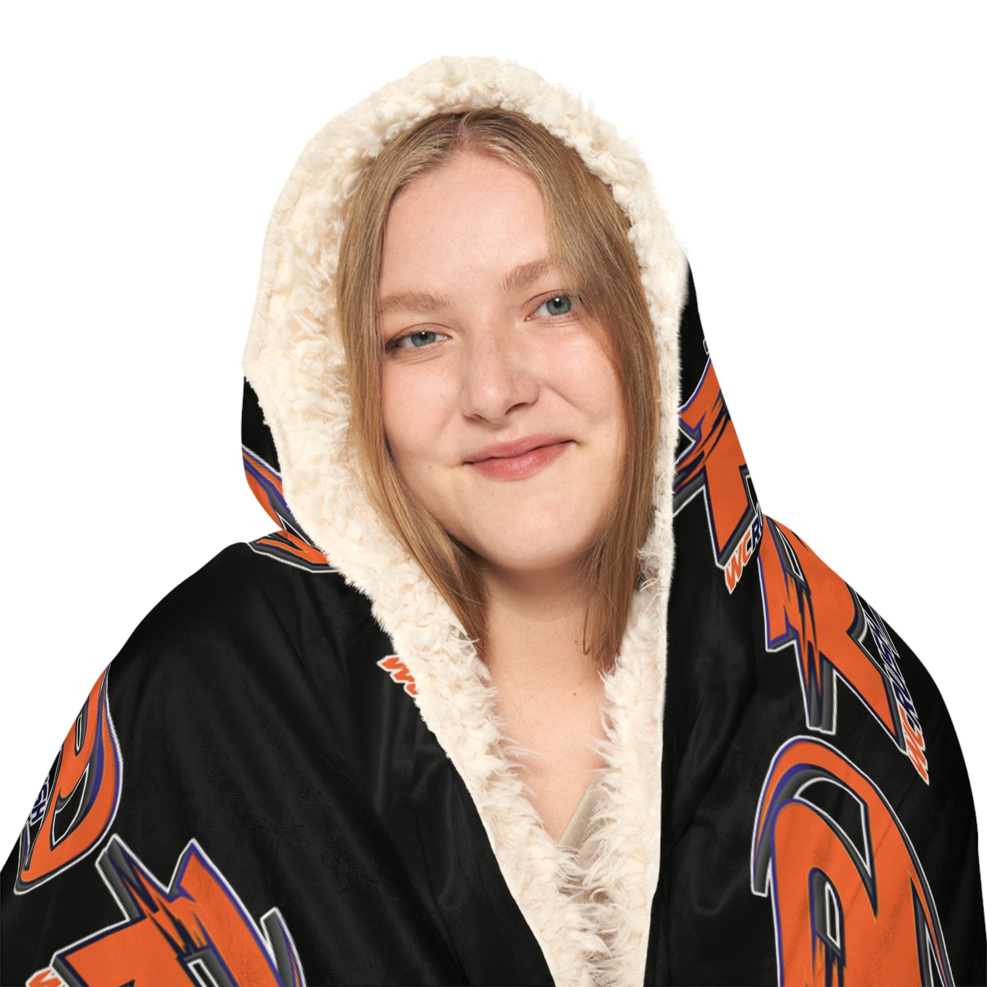 There's no need to get out of bed when you can wear a blanket all day. These incredibly comfy and soft hooded blankets are the perfect choice for cozy days at home. The 100% polyester fabric ensures durability through regular wear. We'll print your original designs onto the front of the blanket in vibrant colors and high resolution. Choose between the two inner lining options – microfleece or sherpa.